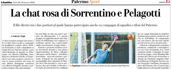 L'edizione odierna de "La Repubblica" si sofferma sul siparietto social Pelagotti-Sorrentino. Stefano Sorrentino è stato catapultato ai tempi del suo Palermo...