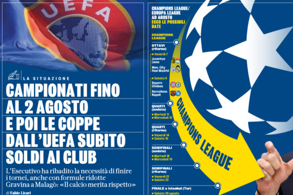 L'edizione odierna della "Gazzetta dello Sport" si sofferma sull'estate calcistica. Restano sempre due scenari. 1) Campionati e Coppe in contemporanea...