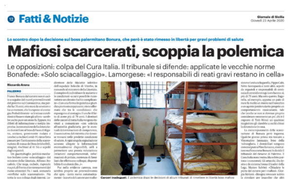 L'edizione odierna del "Giornale di Sicilia" parla della scarcerazione di alcuni boss della mafia. Franco Bonura dal carcere non è...