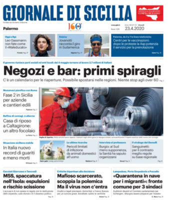 L'edizione odierna del "Giornale di Sicilia" parla della Fase 2 dell'emergenza Coronavirus in Italia al via il 4 maggio. Un primo segnale...