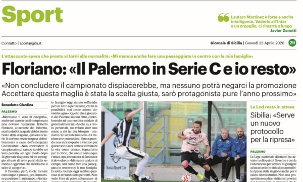 L'edizione odierna del "Giornale di Sicilia" riporta le parole rilasciate da Roberto Floriano al sito ufficiale del Palermo. «Non concludere il...