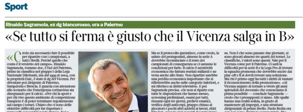 Corriere del Veneto, Sagramola: «Chi oggi è primo ha diritto alla promozione»