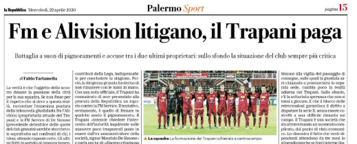 L'edizione odierna di "Repubblica" parla della situazione legata al Trapani. In seguito al pronunciamento del Tribunale di Trapani, che ha imposto...