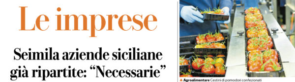 L'edizione odierna di "Repubblica" parla della ripartenza di 6050 aziende in tutta la Sicilia. Sono quelle aziende - scrive il...