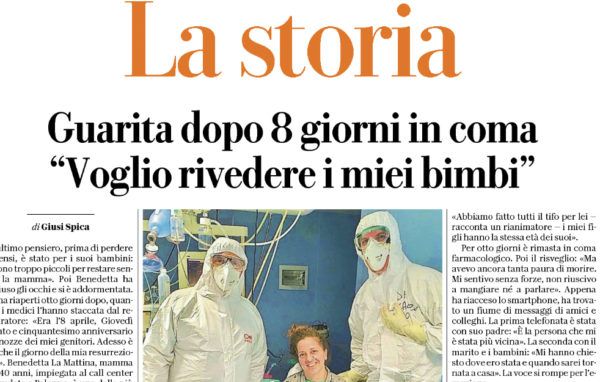 L'edizione odierna di "Repubblica" parla di una storia legata a una paziente guarita dal Covid-19. «Era l’ 8 aprile, Giovedì santo...