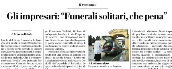 L'edizione odierna di "Repubblica" parla anche dei funerali delle vittime di Covid-19, spesso solitari e in silenzio. «L’ultimo saluto — dice...