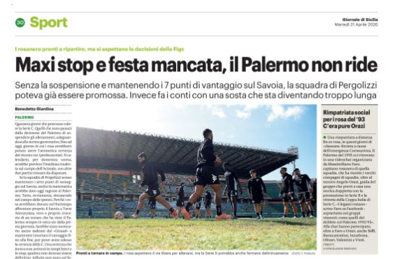 L'edizione odierna del "Giornale di Sicilia" parla di 40 giorni che potevano valere la serie C per il Palermo, che...