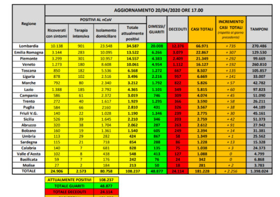 L’ultimo bollettino diffuso dalla Protezione civile conferma e forse cristallizza l’andamento al ribasso dei contagi registrato nei giorni scorsi: per...