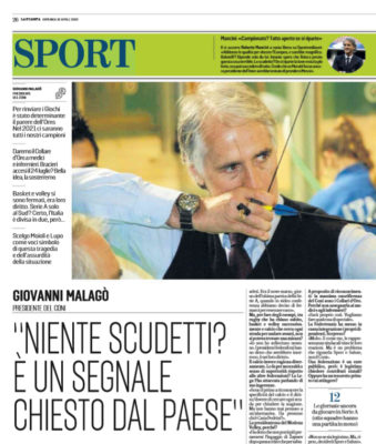 L'edizione odierna de "La Stampa" riporta le dichiarazioni di Giovanni Malagò, presidente del CONI: «Non assegnare scudetti? Non mi permetto...