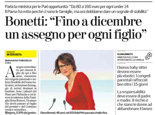 "Il Paese ha retto perché ci sono le famiglie, adesso bisogna dare loro una risposta di stabilita'", assicura in un'intervista...