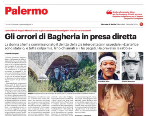 L'edizione odierna del "Giornale di Sicilia" torna sul brutale assassinio di Angela Maria Corona a Bagheria. Una straordinaria confessione in...