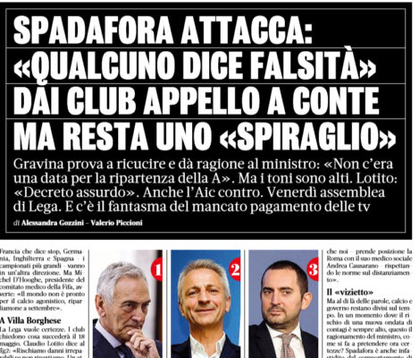 L'edizione odierna della "Gazzetta dello Sport" si sofferma sullo scontro Lega Serie A-Governo. Gravina aveva provato a ricucire dopo il...