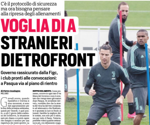 L'edizione odierna del "Corriere dello Sport" si sofferma sulle discussioni relative al possibile proseguimento del campionato di Serie A. Ci...