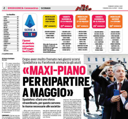 La Lega di Serie A sta studiando un piano per far ripartire i campionati a maggio. Il ministro Spadafora, tramite...