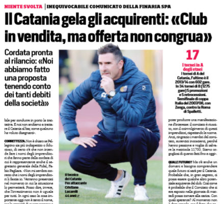 Nonostante il coronavirus abbia imposto lo stop al calcio, ma non solo, la trattativa per l'acquisizione del Catania va avanti....