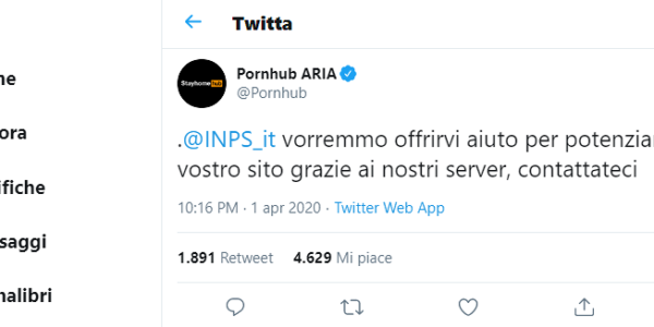 Incuriosisce la mano tesa dal sito "Pornhub" all'INPS, vittima di continui e violenti attacchi hacker che hanno mandato in tilt...