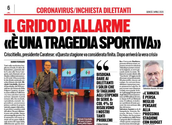 L'edizione odierna di "Tuttosport" riporta le dichiarazioni del noto giornalista Michele Criscitiello: «La vera crisi deve ancora arrivare. Quando si...
