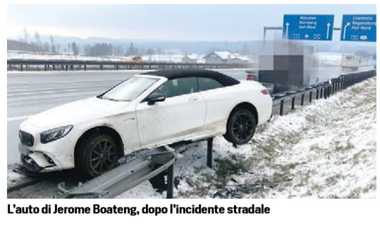 L'edizione odierna del "Corriere dello Sport" si sofferma sull'incidente automobilistico che ha coinvolto Jerome Boateng, difensore del Bayern Monaco. E'...