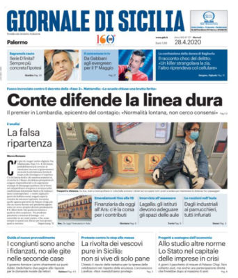 Nella sua prima pagina, l'edizione odierna del "Giornale di Sicilia" si sofferma sulla linea dura di Conte e sull'ipotesi che...