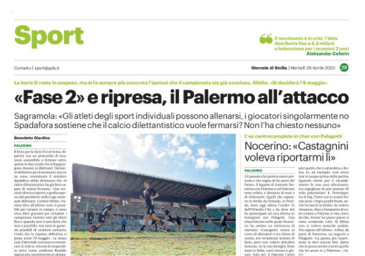 L'edizione odierna del "Giornale di Sicilia" riporta le dichiarazioni di Rinaldo Sagramola, AD del Palermo, in risposta al ministro Spadafora: «Nessuno...