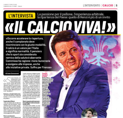 L'edizione odierna del "Corriere dello Sport" riporta le dichiarazioni di Matteo Renzi, leader di Italia Viva: "La cosa che mi...