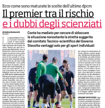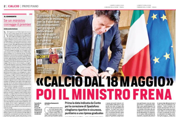 Corriere dello Sport: “Serie A, i dubbi degli scienziati che hanno convinto Conte. Il retroscena sul nuovo decreto”