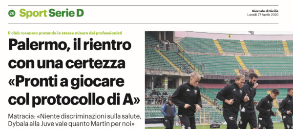 L'edizione odierna del "Giornale di Sicilia" si sofferma sull'ipotetica ripresa del campionato. Il Palermo rimane pronto, ma è difficile che...