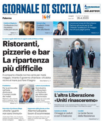 Prima pagina Giornale di Sicilia: “Le nuove regole della Fase 2: oggi le scelte di Palazzo Chigi. Ristoranti, pizzerie e bar. La ripartenza più difficile”