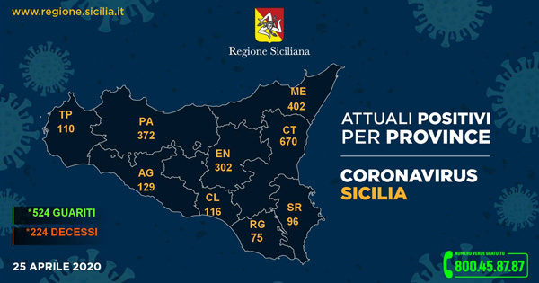 Questi i casi di coronavirus riscontrati nelle varie province dell'Isola, aggiornati alle ore 17 di oggi (sabato 25 aprile), così...