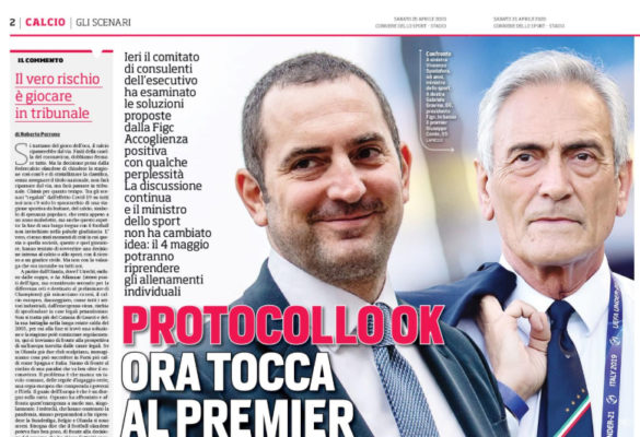 L'edizione odierna del "Corriere dello Sport" si sofferma sull'attuabilità del Protocollo in Serie A. Il ministro Spadafora conta di dare...