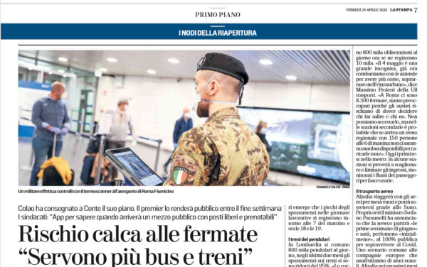 L'edizione odierna de "La Stampa" parla della Fase 2 dell'emergenza Coronavirus in Italia che prenderà il via al 4 maggio....