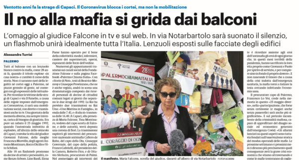L'edizione odierna del "Giornale di Sicilia" parla del ricordo della strage di Capaci. A causa del Covid, non ci sarà...