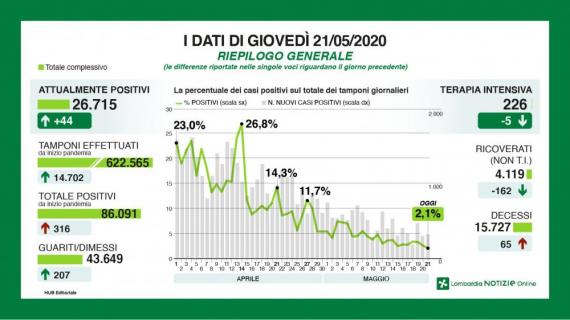 La Regione Lombardia ha effettuato 14.702 nuovi tamponi nelle ultime 24 ore e ha individuato 316 nuovi positivi al COVID-19. Rispetto a...