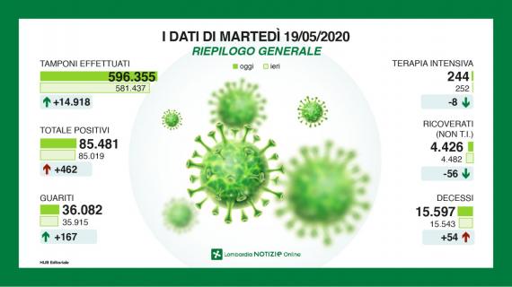 La Regione Lombardia ha reso noti i dati delle ultime 24 ore. Il bollettino parla di 54 decessi nell'ultimo giorno...