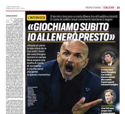 L'edizione odierna del "Corriere dello Sport" riporta le parole dell'ex tecnico dell'Inter Spalletti intervenuto a "Sky Sport": “Il calcio è...