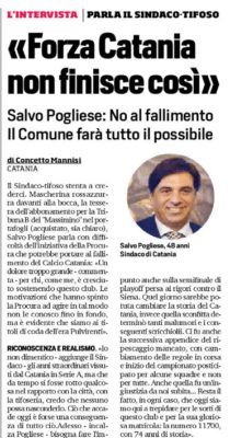 L'edizione odierna del "Corriere dello Sport" riporta le dichiarazioni di Salvo Pogliese, sindaco di Catania: «Istanza di fallimento del club? Un...