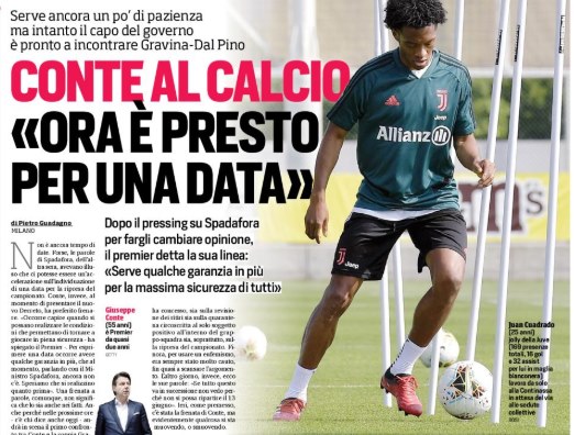 L'edizione odierna del "Corriere dello Sport" si sofferma sulla ripresa dei campionati. Conte ha affermato che serve qualche garanzia in...