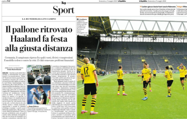 L'edizione odierna de "La Repubblica" si sofferma sulla ripresa della Bundesliga. La partita più attesa, il derby Borussia Dortmund-Schalke 04,...
