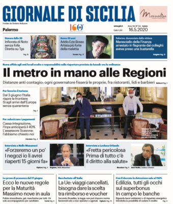La prima pagina dell'edizione odierna del "Giornale di Sicilia", parla di "metro" in mano alle regioni per quanto riguarda l'emergenza...