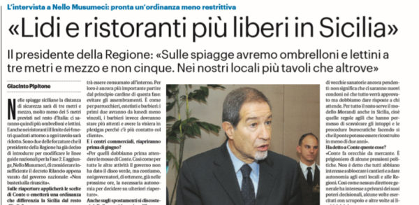 L'edizione odierna del "Giornale di Sicilia" parla delle misure di sicurezza che si avranno in Sicilia, riportando le parole del...