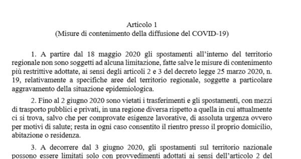 Dal 18 maggio 2020 gli spostamenti all’interno del territorio regionale non sono soggetti ad alcuna limitazione, fatte salve le misure...