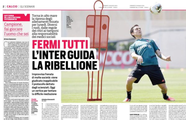 Corriere dello Sport: “Ripresa Serie A. Fermi tutti. L’Inter guida la ribellione”