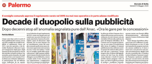 Gds: “Palermo Damir-Alessi. Decade il duopolio sulla pubblicità. Dopo decenni stop all’anomalia segnalata pure dall’Anac”