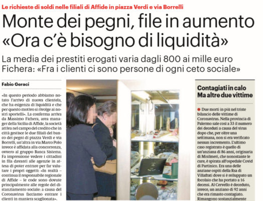L'edizione odierna del "Giornale di Sicilia" si sofferma sulle file al Monte dei Pegni. «In questo periodo abbiamo notato l’arrivo...