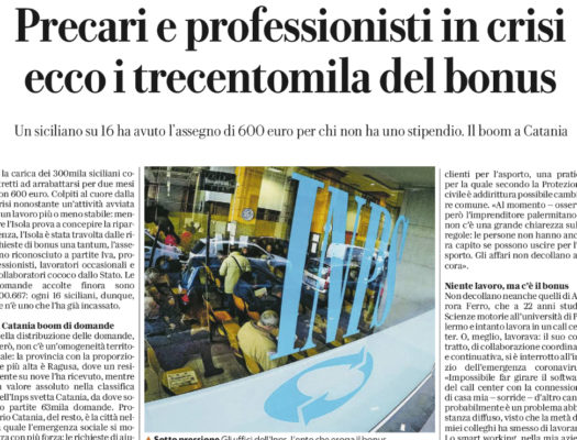 L'edizione odierna de "La Repubblica" si sofferma sulla carica dei 300 mila siciliani costretti a sfruttare il bonus di 600...