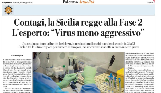 Repubblica: “Contagi, la Sicilia regge alla Fase 2. L’esperto: «Virus meno aggressivo»”