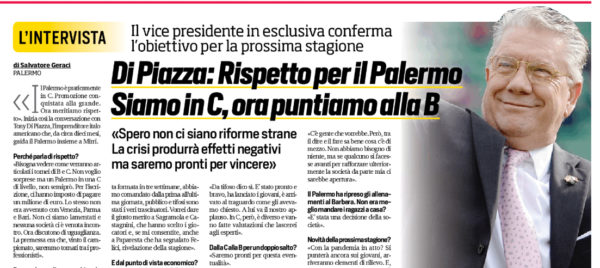 L'edizione odierna del "Corriere dello Sport" riporta le dichiarazioni di Tony Di Piazza, vicepresidente del Palermo: «Giocare a porte chiuse? Ne...