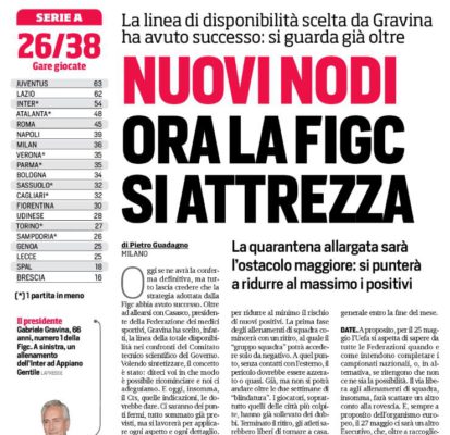 L'edizione odierna del "Corriere dello Sport si sofferma sulla linea della FIGC. La strategia di allearsi con Casasco, presidente della...