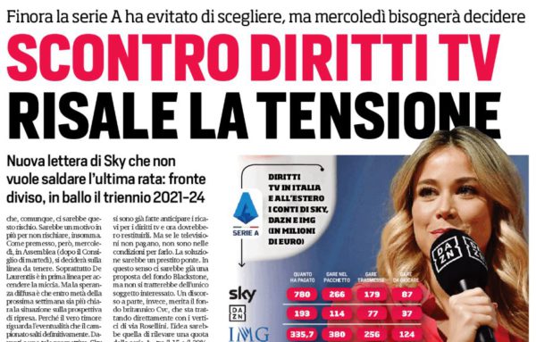 L'edizione odierna del "Corriere dello Sport" si sofferma sulla tensione dello scontro relativo ai diritti tv della Serie A. La...