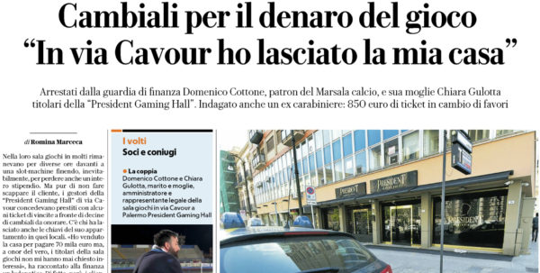 L'edizione odierna de "La Repubblica" si sofferma sull'arresto di Domenico Cottone, presidente del Marsala, e della moglie Chiara Gulotta. Pur...